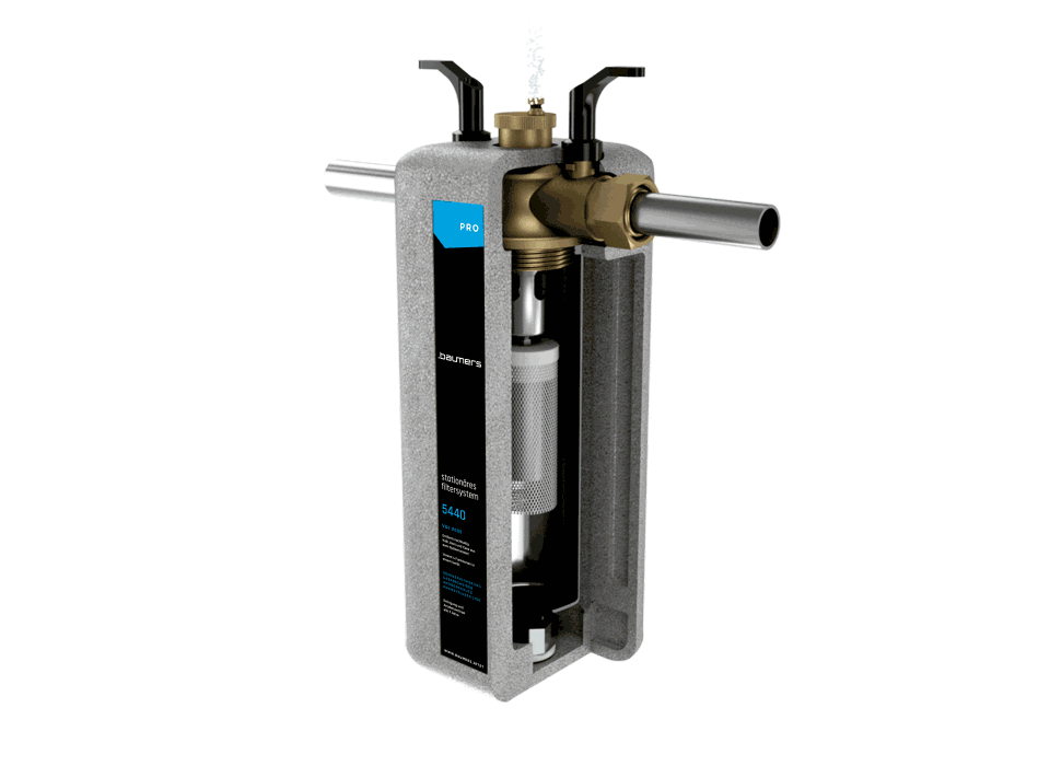 BAUMERS 5440 PRO Filtersystem arbeitet zuverlässig ohne Chemie und Fremdstrom. Die Installation und der Unterhalt sind einfach und günstig. Das Filtersystem verbessert die Energieeffizienz ökologischer Heizanlagen, senkt ihre Betriebskosten und garantiert einen zuverlässigen Betrieb. Richtlinien nach VDI 2035 „Vermeidung von Schäden in Warmwasser-Heizungsanlagen“ sind somit einfach und langfristig eingehalten.