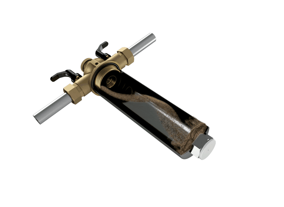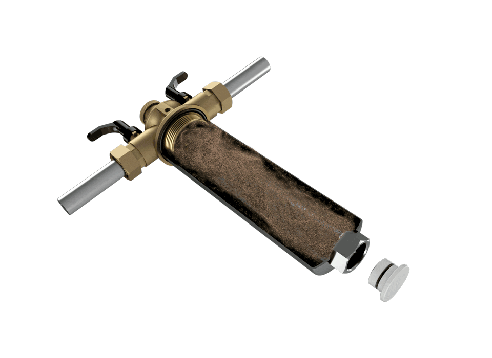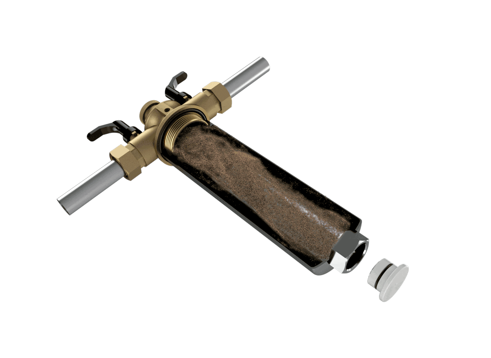 Das Filtergehäuse aus Edelstahl trennt Rost und Schlamm aus dem Wasser, ohne zu verstopfen. Ein starker Magnet an der Unterseite des Gehäuses und die natürliche Schwerkraft, halten Rost und Schlammpartikel zurück. Integrierte Absperrventile ermöglichen ein bequemes Reinigen des Filters.