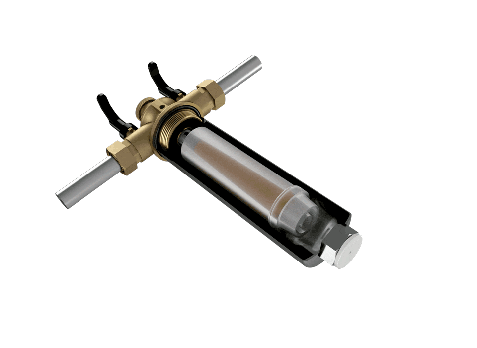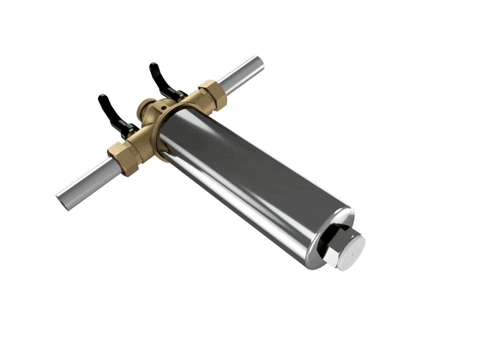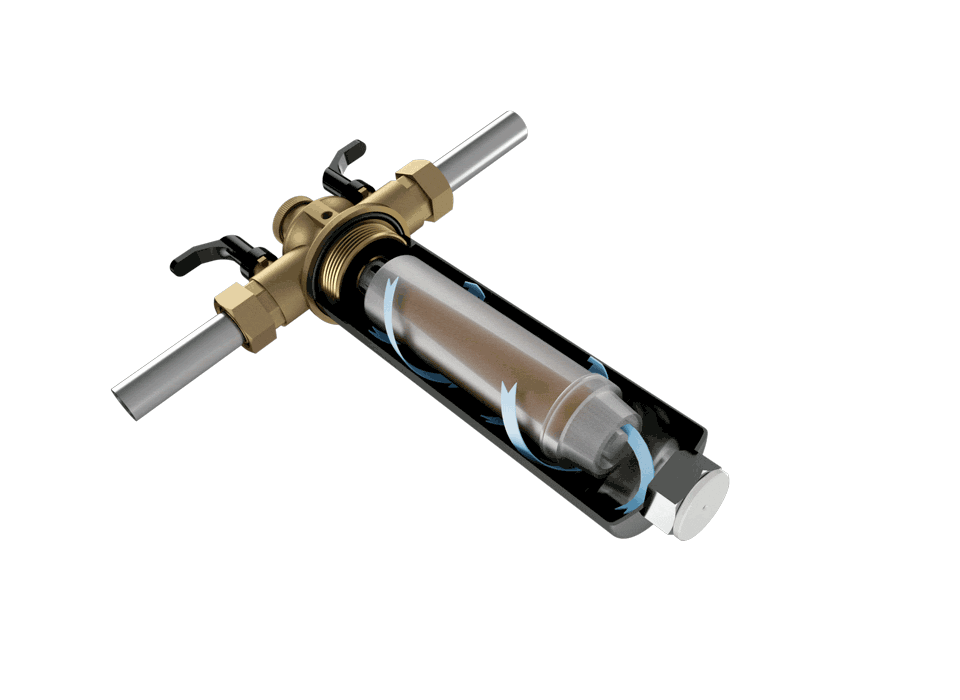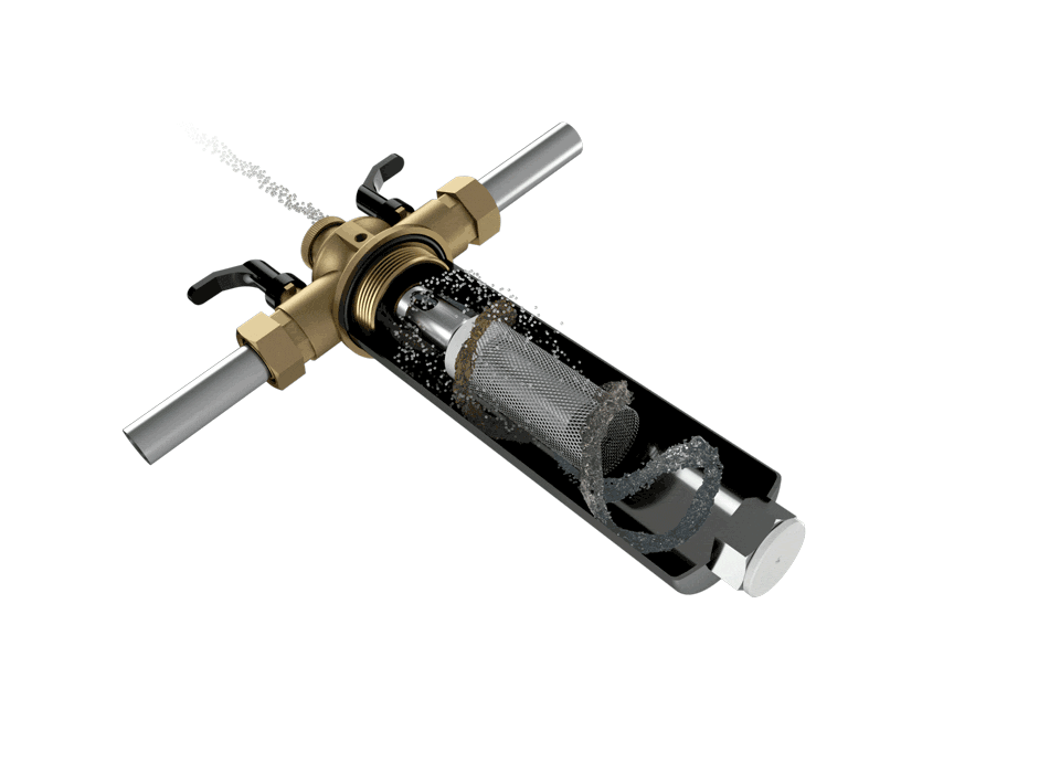 Das Filtergehäuse aus Edelstahl trennt Rost und Schlamm aus dem Wasser, ohne zu verstopfen. Ein starker Magnet an der Unterseite des Gehäuses und die natürliche Schwerkraft, halten Rost und Schlammpartikel zurück. Integrierte Absperrventile ermöglichen ein bequemes Reinigen des Filters.