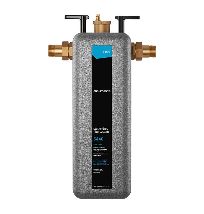 BAUMERS 5440 PRO Filtersystem arbeitet zuverlässig ohne Chemie und Fremdstrom. Die Installation und der Unterhalt sind einfach und günstig. Das Filtersystem verbessert die Energieeffizienz ökologischer Heizanlagen, senkt ihre Betriebskosten und garantiert einen zuverlässigen Betrieb. Richtlinien nach VDI 2035 „Vermeidung von Schäden in Warmwasser-Heizungsanlagen“ sind somit einfach und langfristig eingehalten.